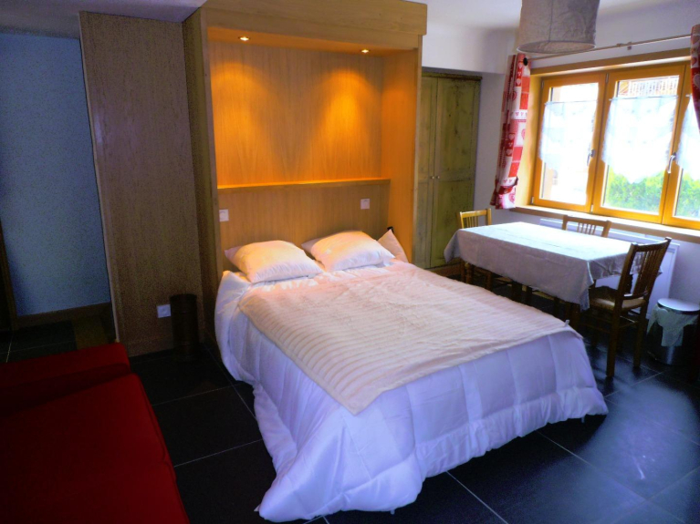 Appartement entièrement refait à neuf en 2013 au look "contemporain" dans un chalet idéalement situé et au standard 4 étoiles. Il comprend 1 chambre double et un salon - salle à manger avec 1 lit double rabattable.
