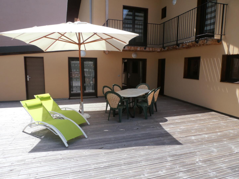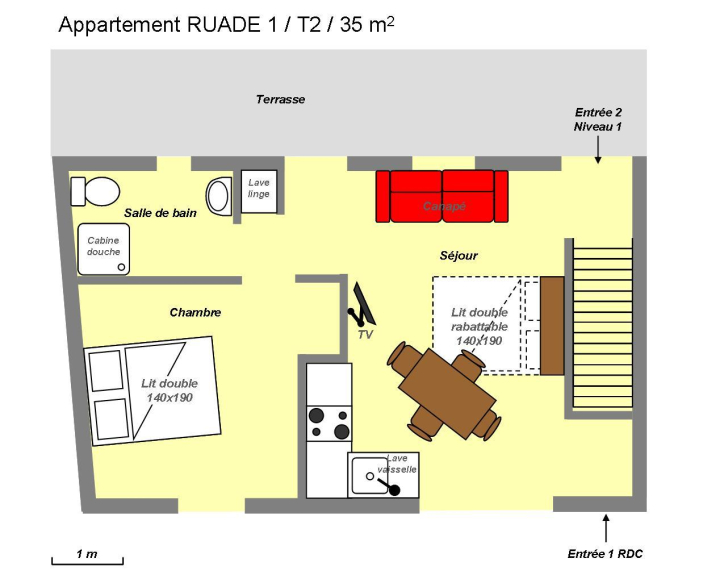 Cet appartement comprend un local à skis ou vélos, ainsi qu'une terrasse commune avec l'appartement voisin RUADE 2.