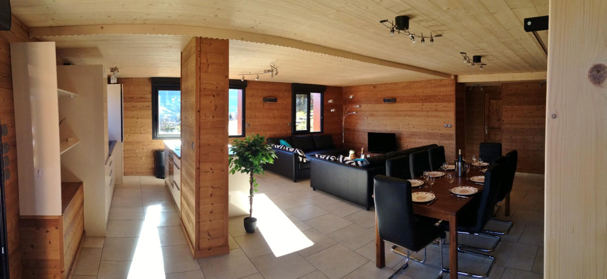 Le Logement : Appartement de 100 m² dans un chalet individuel au pied des pistes du domaine skiable de Valmorel / Saint Francois Longchamp et Doucy Station pouvant accueillir jusqu’à 10 personnes.Grand séjour / réception de 50 m² comprenant une cuisine US ouverte sur le salon séjour.2 chambres avec un lit double1 chambre avec deux lits superposés1 chambre avec 2 lits simples2 canapés lits (salon)Soit 8 personnes en chambre pour 10 couchages au total.Deux salles de douches, et deux WC séparés.Cuisine totalement équipée : lave-vaisselle, four, plaques électriques, micro-ondes, réfrigérateur, congélateur, lave-linge, cafetière, 2 appareils à raclette, 2 appareils à fondue.Télévision et lecteur de DVD.Chauffage au sol, entièrement automatique (+ chauffages individuels dans les chambres)Une grande table à manger est à disposition (pour accueillir 10 personnes ensemble et facilement)La situation & la station : Ce chalet est situé au pied des pistes sur les hauteurs de la station de Doucy Station (station familiale du domaine skiable de Valmorel / Saint François Longchamp) 1400 mètres d'altitude et offre un accès direct aux pistes.Au calme et bien exposé, le chalet se trouve en lisière de bois, offrant une vue imprenable sur la montagne, pour une ambiance très dépaysante ! Le télésiège passe devant le chalet, et la piste derrière (30 mètres)La station se situe à 10 minutes à pied (chemin piéton), 2 minutes en ski et 2 minutes en voiture.Dans cette station, vous trouverez l’intégralité des biens et services pour votre séjour : location matériel de skis (skiset & intersport), supermarché d’appoint : Sherpa, 3 restaurants savoyards, Office du tourisme, ESF (Ecole de Ski Française) achat des forfaits ainsi qu’une crèche.Modalités, précautions et règlement :Dans le but d'éviter les traditionnels embouteillages du samedi, les locations se font du Dimanche au Dimanche.Check in: 16h00 - Check out: 10h00Le chalet est entièrement non-fumeur.Pas d’EVG - EVFLes « plus » des chalets de Lesne :En saison uniquement (juillet-aout et Janvier-Février-Mars-Avril) : - Livraison des pains et croissants à domicile au chalet tous les matins – service gratuit- Livraison et facturation de la location des skis à domicile au chalet le jour de votre arrivée – service gratuit- Sauna extérieur 8 personnes (location supplémentaire à la semaine)Transports & Accès :Par la route : Rejoindre Chambery puis Alvertville par l’A43, suivre la voie express RN 90 en direction de Moutiers, prendre la sortie 37 pour La lechere, Saint Oyen, Doucy-Station. A Doucy Station, suivre « piscine d’été », « lotissement chantemerle » vous arriverez sur un parking sous le télésiège : vous êtes arrivé.Gare SNCF : Gare de Moutiers – Brides-les-bains. Contacter moi pour un taxi.Activités été et hiver : A l’office du tourisme de la station de Doucy Station, vous retrouverez de multiples activités proposées par la station (à 10 minutes du chalet) :Ping pong, aire de jeux pour les enfants, terrain de foot et basket (city stade), terrain de beach volley, piscine, tir à l’arc, terrains de tennis, randonnées, VTT, parapente, escalade, deltaplane, etc …A 25 minutes du chalet, les activités sont : Rafting, canyoning, canoë raft, hydro-speed, airboat, stand-up paddle, via ferrata, etc …En hiver : ski alpin, ski de fond, raquettes, crèche pour les enfants, descente de luge, etc …La station thermale de la Léchère est située à 15 minutes en voiture : possibilité Spa, Sauna et Aqualudique