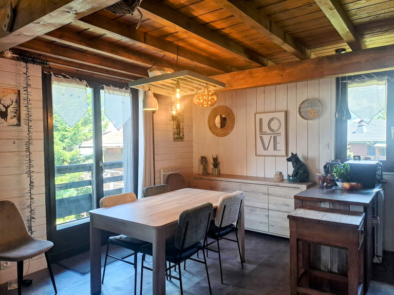 Chalet individuel pour 7 personnes, meublé, ambiance montagne, parfaitement équipé, situé à 300 mètres du centre de la station La Norma et 200 mètres des pistes
