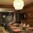 Un grand séjour / salon/ salle à manger avec cuisine ouverte et cheminée centrale
