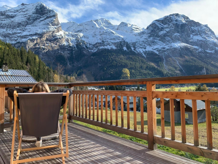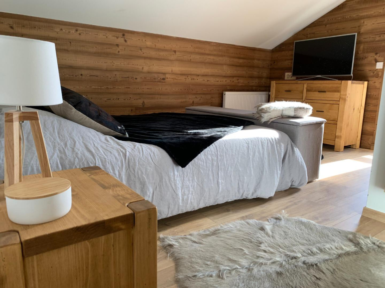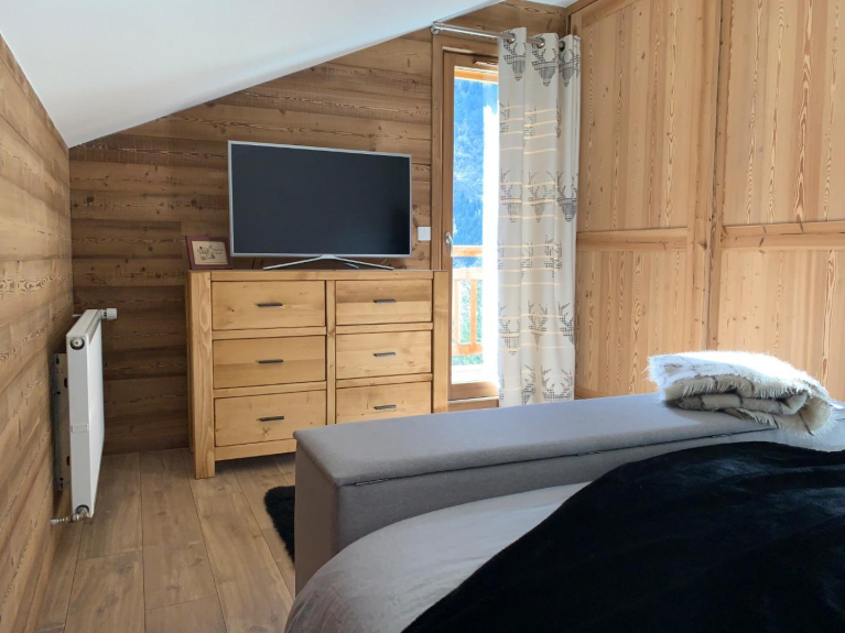 Chalet individuel récent (2016) orienté plein Sud avec grande terrasse vue panoramique sur village et montagnes.
