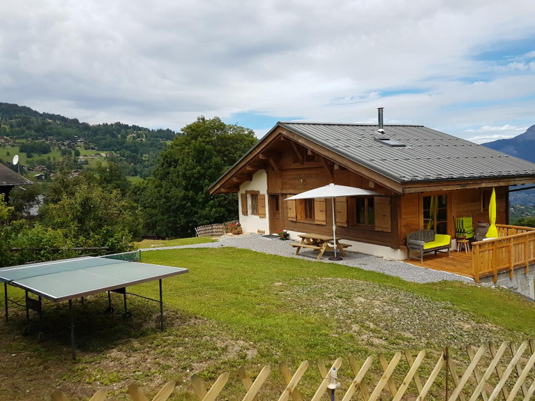 Chalet individuel implanté face au massif du Mont-Blanc et dominant la vallée de Saint-Gervais. Le chalet est une construction neuve (terminée en 2016) au caractère authentique renfermant un mazot traditionnel. Classé 2 étoiles.