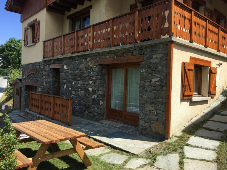 Au cœur de la station village de Valmeinier 1500, ce chalet de charme construit avec les matériaux du pays(pierre, bois et lauzes), vous accueillera pour d'agréables séjours en famille.
