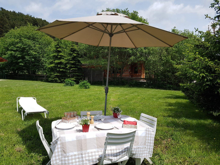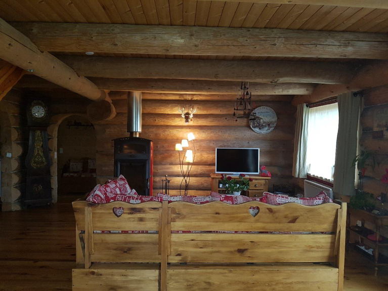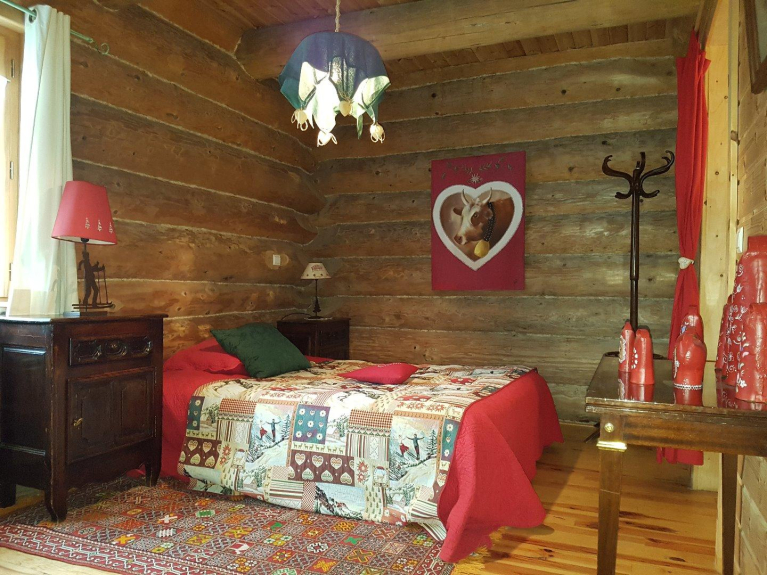 Le chalet offre une belle vue sur la montagne du Cambre-d'Aze, il est en harmonie avec son environnement, il a été construit de façon artisanale en bois de sapin noir par un Maître Fustier des Vosges.