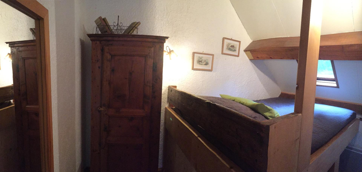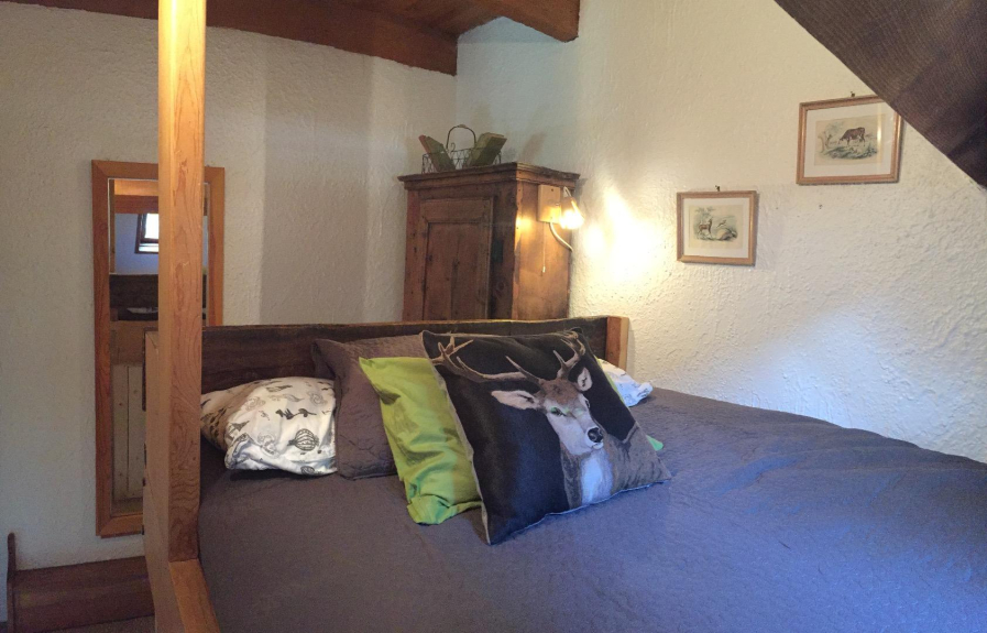 1 chambre avec 1 lit en 140cm légèrement surelevé ( accès au moyen d'un petit escabeau).