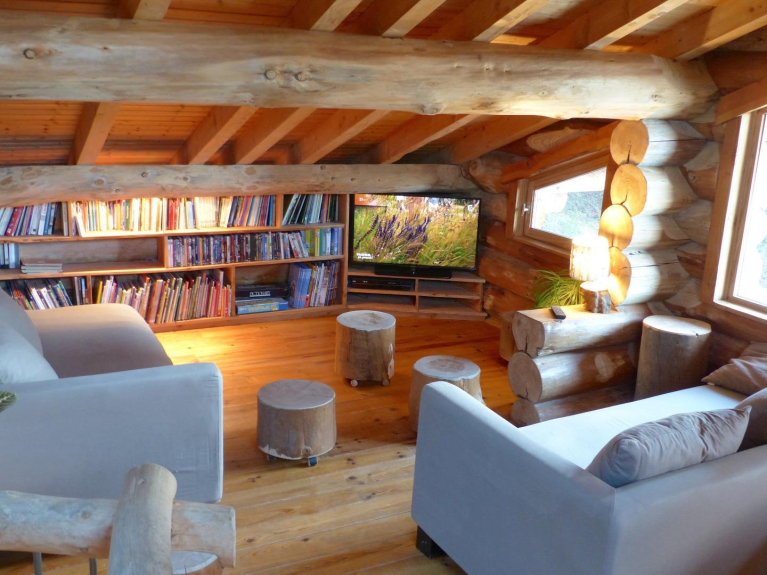Bien être assuré grâce à l'équipement de très grande qualité (matériaux naturels, literie, hotte silencieuse...), au chauffage par le sol associé au plaisir du feu de bois, au bain chaud à remous avec ses jets massants, aux larges espaces baignés de lumière.