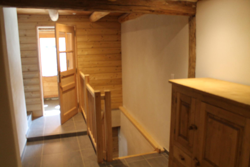 Grand séjour avec salon et TV, 5 chambres, 5 salles de bains. (2 lits doubles et 8 lits simples, 1 lit bébé). S.d.b.2 WC, LV, LL. Forfait ménage proposé. Draps fournis.L'intérieur chaleureux, en mélèze et pierre, incite à la convivialité et aux retrouvailles en famille dans ce vaste séjour agrémenté de sa cuisine américaine.