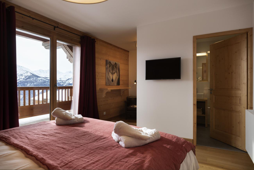 Le Chalet se compose de 8 appartements de grand luxe avec des services personnalisés (4*) compris dans votre location comme la préparation à votre arrivée des chambres et sdb/d, la mise à disposition des serviettes de bain, les kits sdb/d et cuisine de bienvenue, le nettoyage de sortie, le Wifi gratuit et TV satellite, l'espace fitness, le sauna, un salon commun, un espace de jeux et des rangements chauffés pour le matériel de ski (skis et bottines) .... et pas de couchage dans le salon