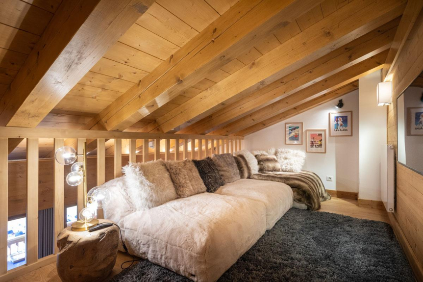 Il propose 6 lits avec un séjour avec charpente apparente et espace TV/bureau en mezzanine, cuisine ouverte, balcons orientés sud dans toutes les pièces.