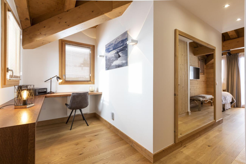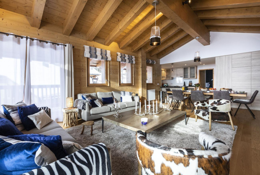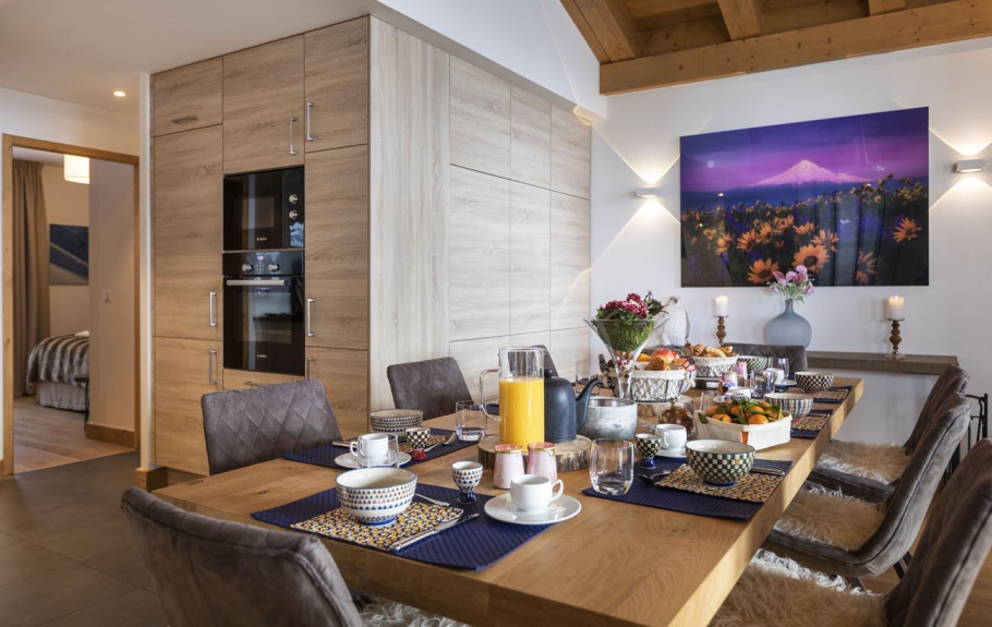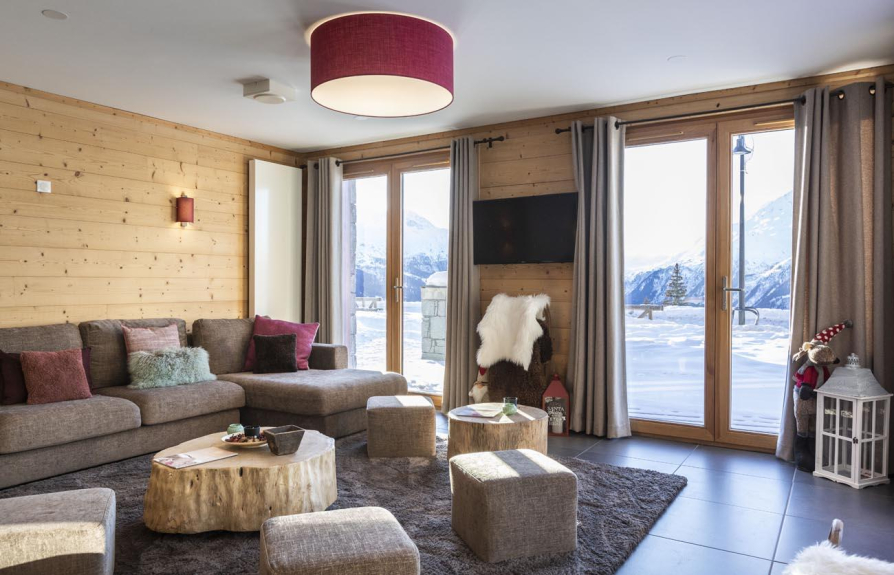 Le Chalet se compose de 8 appartements de grand luxe avec des services personnalisés (4*) compris dans votre location comme la préparation à votre arrivée des chambres et sdb/d, la mise à disposition des serviettes de bain, les kits sdb/d et cuisine de bienvenue, le nettoyage de sortie, le Wifi gratuit et TV satellite, l'espace fitness, le sauna, un salon commun, un espace de jeux et des rangements chauffés pour le matériel de ski (skis et bottines) .... et pas de couchage dans le salon
