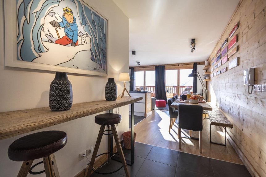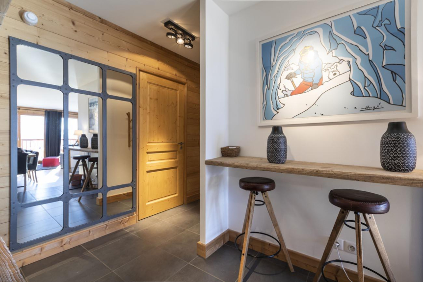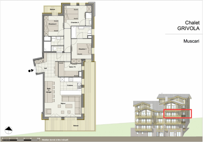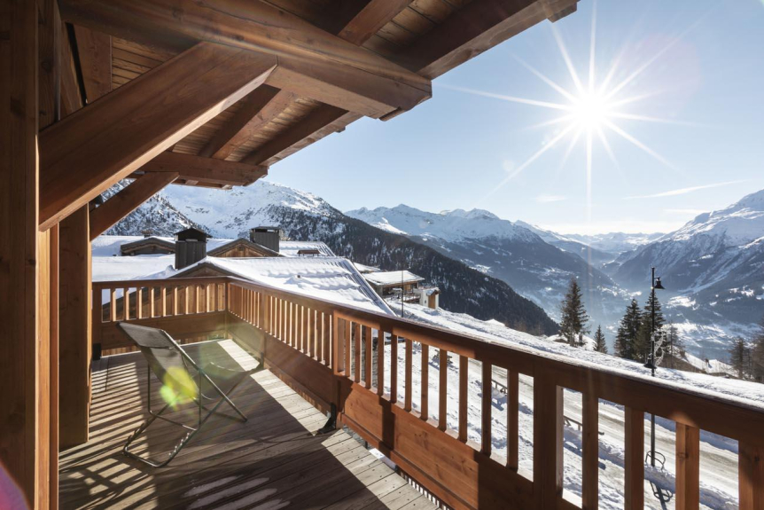 L'appartement de +/- 110 m² offre un balcon en L orientée plein Sud avec une vue panoramique sur la Tarentaise.