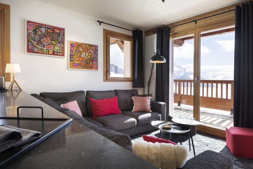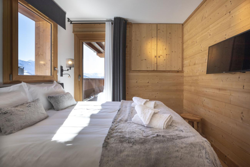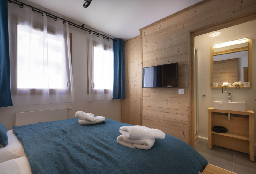 Le Chalet se compose de 8 appartements de grand luxe avec des services personnalisés (4*) compris dans votre location comme la préparation à votre arrivée des chambres et sdb/d, la mise à disposition des serviettes de bain, les kits sdb/d et cuisine de bienvenue, le nettoyage de sortie, le Wifi gratuit et TV satellite, l'espace fitness, le sauna, un salon commun, un espace de jeux et des rangements chauffés pour le matériel de ski (skis et bottines) .... et pas de couchage dans le salon