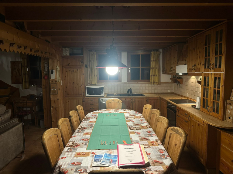 Les équipements du chalet : Lave-vaisselle, frigidaire et congélateur, 4 plaques de cuisson vitrocéramique, four électrique, hotte aspirante, micro-ondes, cafetière filtre, nespresso, bouilloire électrique, grille-pain, robot ménager, batteur électrique, mixeur soupe, couteau électrique, 2 services à raclette, 2 services à fondue, vaisselle. TV OLED, Lecteur Blu-ray/DVD/USB, Hifi, Internet Wifi haut débit fibre. Lave-linge et sèche-linge. Chaise repas enfant. Lit parapluie pour bébé, baignoire pour bébé, table à langer. Sèche-chaussures de ski. Cheminée avec insert coulissant. Jeux de société, livres et jeux pour enfants.
