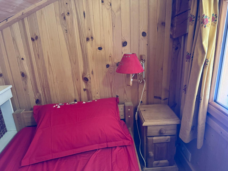 • Au niveau 1 : Entrée (débottoir) avec rack à skis et sèche/chauffe chaussures de ski, WC, lave-linge et sèche-linge. Cuisine, séjour avec cheminée, salon avec deux canapés (dont un canapé lit), une méridienne et un pouf, une chambre avec un lit double 140cm.