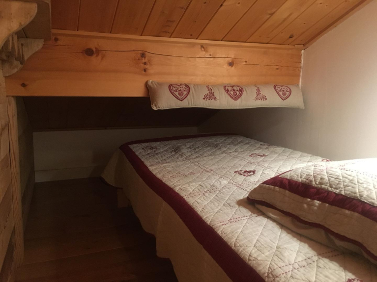 • Au niveau 2 : Petite mezzanine avec coin montagne et couchage 90cm (faible hauteur sous plafond), petite salle d’eau et WC. Une chambre avec un lit double 160cm donnant sur un coin montagne avec un lit 90 cm.