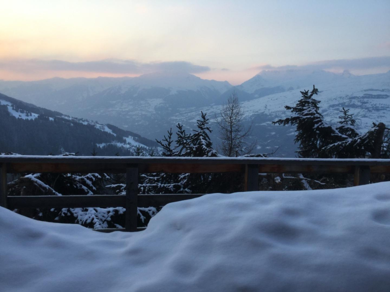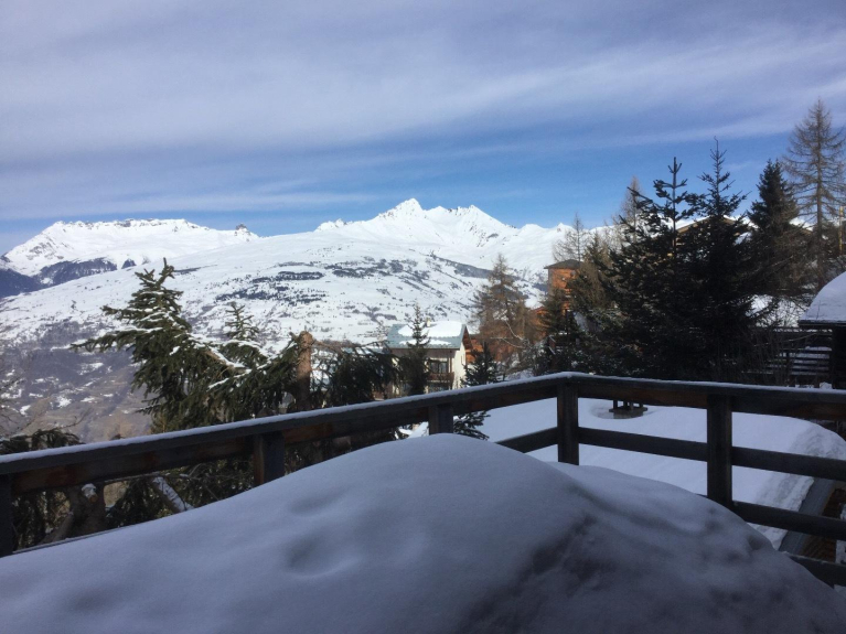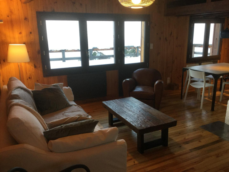 chalet de 70 m2 refait à neuf en 2018, parfaitement situé, en centre station à proximité des commerces, à 50 m des pistes au centre de Paradiski. Grande terrasse 25 m2 avec vue dégagée sans vis à vis à 180 degrés exposée sud ouest. Deuxième terrasse de 30 m2 au niveau inférieur avec moins de dégagement