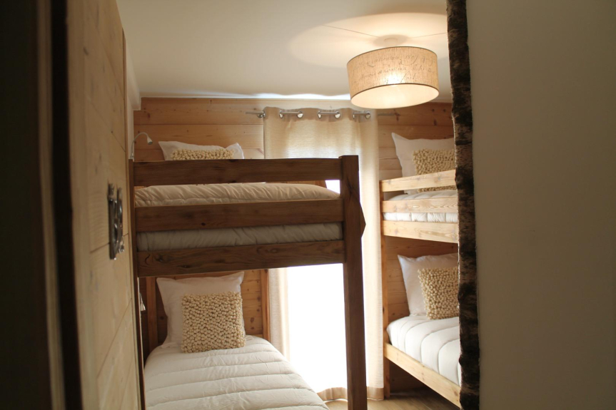 La chambre "Annapurna" possède 2 lits superposés en 90x190 avec sur-matelas et 2 lits superposés en 80x190 avec sur-matelas, d'un point d'eau avec douche à l'italienne, de sèche serviette, de sèche cheveux.