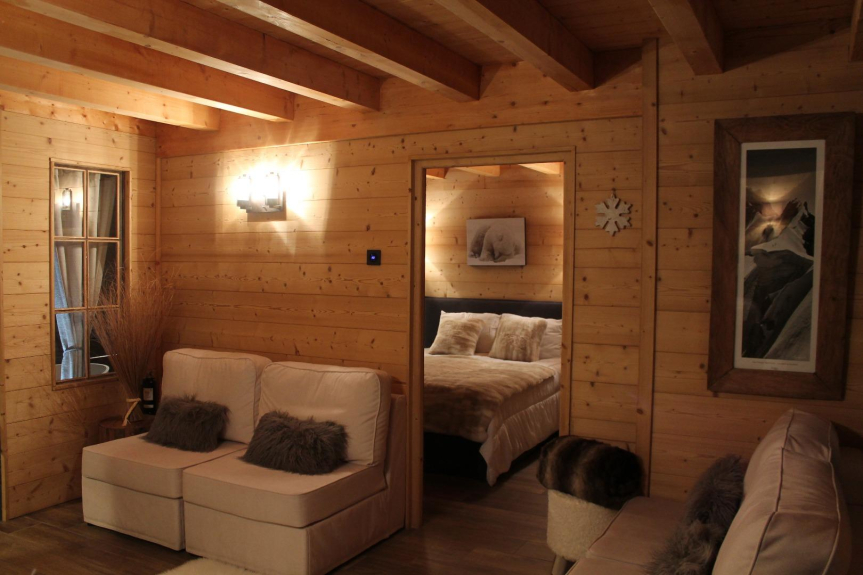 Le rez-de-jardin est constitué de la chambre "Annapurna", de la chambre "Les Écrins", de la chambre refuge chancel , du sauna, de la buanderie et d'un WC séparé.
