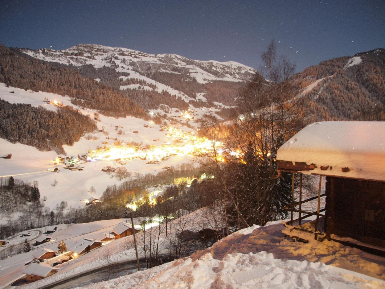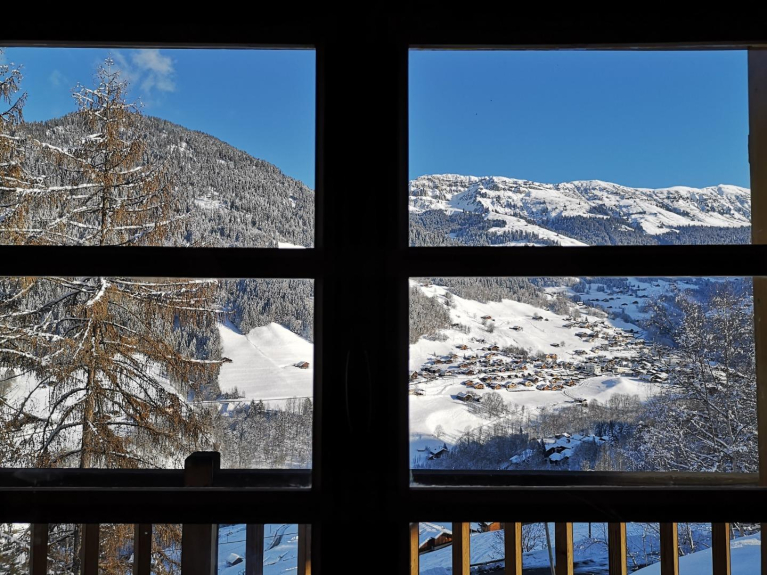 Très bien exposé (Est et Sud), il offre une vue magnifique sur Arêches situé à 2,5km et l’ensemble de la vallée.