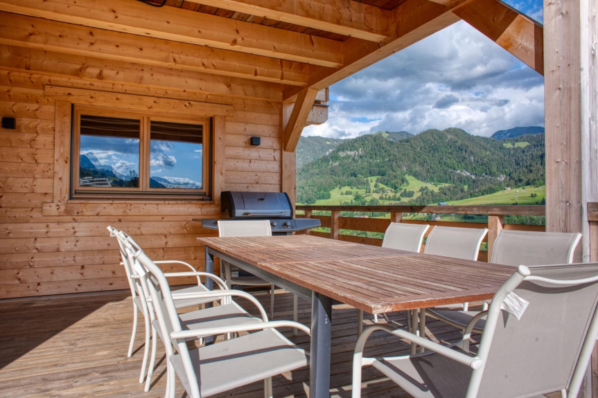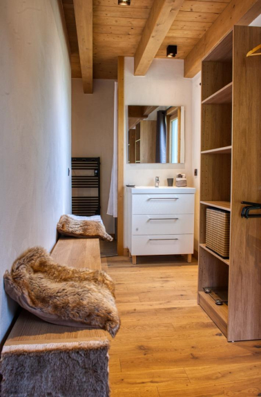 L’ensemble du chalet est habillé de bois et de matériaux choisis avec soin dans l’optique de lui conférer une ambiance cosy et chaleureuse. Il est disponible pour 10 personnes.