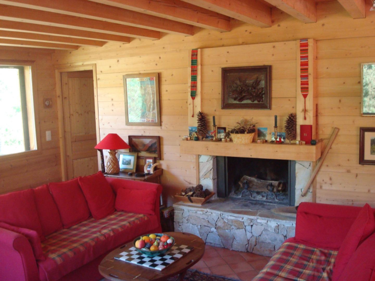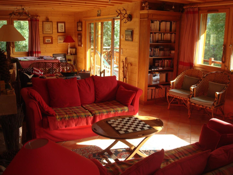 Chalet construit au début des années 2000, plein de charme, exposé plein sud et vue sur les glaciers, il offre tout confort (170 m2, 5 chambres, 2 salles de bain + 1 lavabo, 2 WC) :