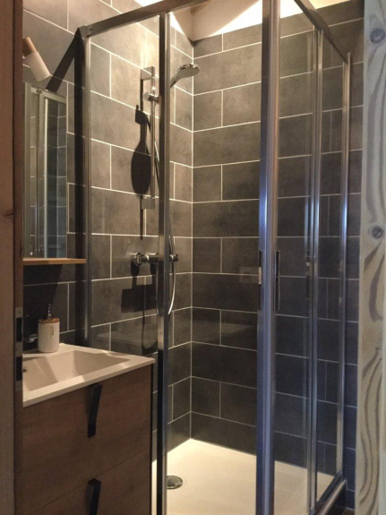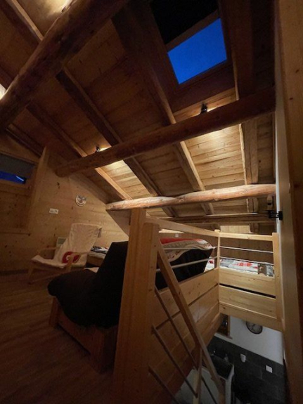 Au 1ère étage, 1 salon Coin Télé avec canapés, 2 lits (1 personne 90X200) avec une magnifique vue panoramique sur la chaine de montagne de la grande journée, 1 chambre (1 lit double 140x190cm) et 1 Salle d'eau / douche/ WC .