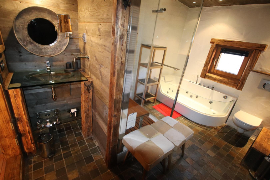 Au rez-de-chaussée du chalet vous trouverez encore 3 chambres doubles dont une suite avec un coin nuit pour les enfants. L’accès au solarium se fait par cet étage, où vous trouverez le spa de nage pour une détente ultime : la piscine à jets, chauffée à 31°, et le jacuzzi 4 places chauffé à 37° !