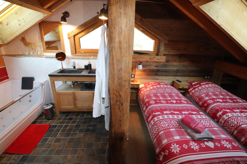 Le chalet le Soleil est habillé de pierres et de vieux bois qui en fait un lieu unique conçu pour que vous passiez en moment inoubliable dans un lieu d'exception. Chaque pièce a été pensée pour votre plus grand confort (chambres spacieuses avec salle de bain privatives avec WC, plusieurs équipements bien-être).