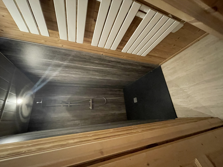 • Au niveau haut : 1 chambre à 2 lits électriques 80x190 (sur-matelas 160x190 disponible), 1 bureau ; 1 pièce de 9m2 servant de bureau et de chambre bébé si besoin; 1 lavabo double, 1 douche à l’italienne ; 3 sèches serviettes.