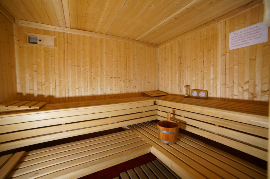 • Au sous-sol : un espace détente équipé d’un sauna, un lit de massage électrique chauffant à billes, une plaque vibrante, un vélo ellyptique, 1 rameur, 1 grand écran tv.