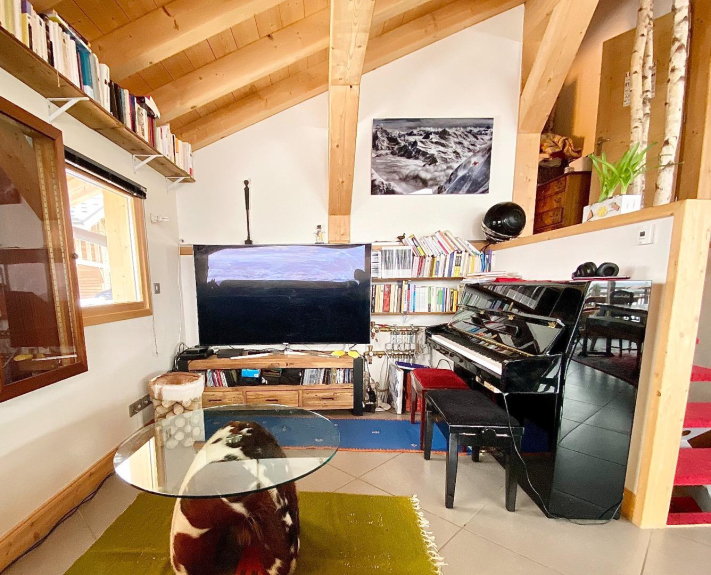 • Les différents niveaux sont séparés par quelques marches, le chalet étant construit dans la pente.