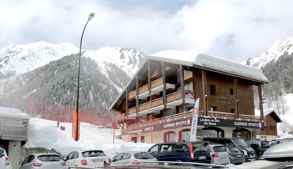Magasin de location de ski dans le chalet.
