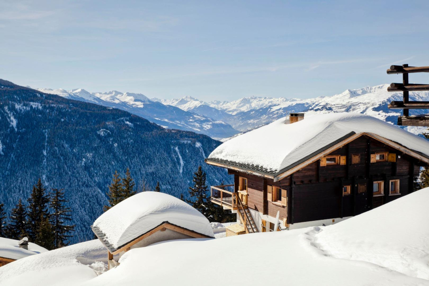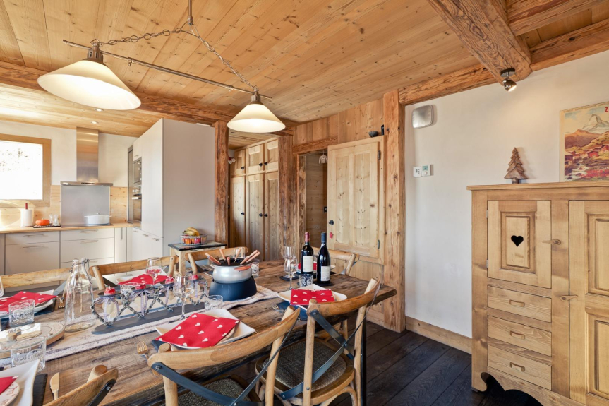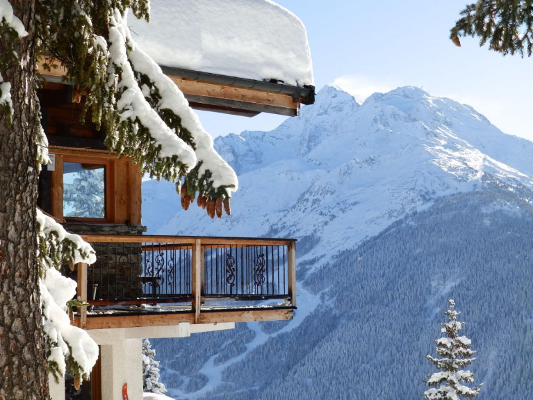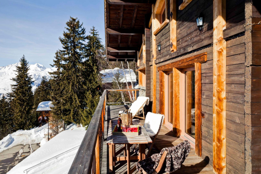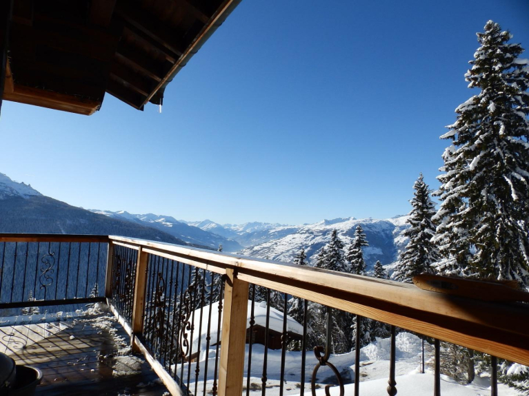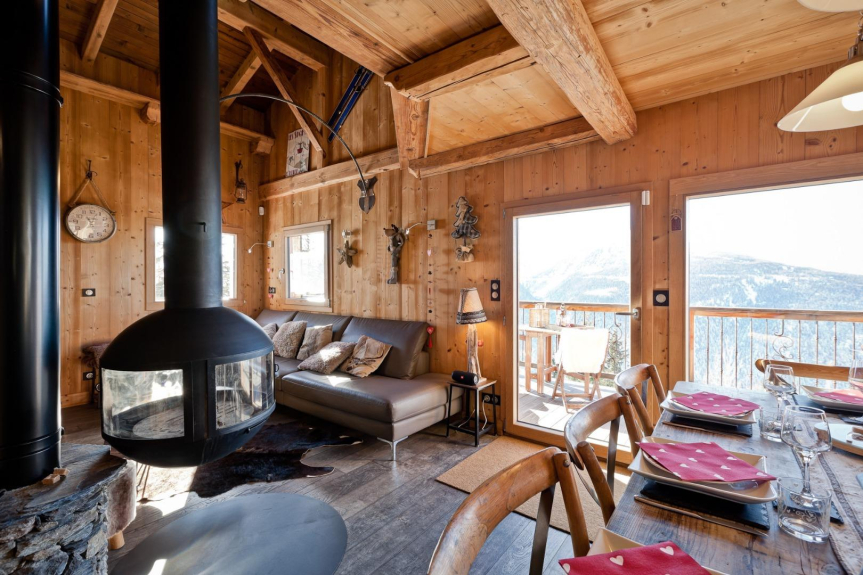 Ambiance bois et pierre , dans un cadre chaleureux , vue panoramique exceptionnelle 180 ° face au Mont Pourri 3773 m ,