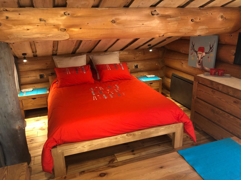 Laissez-vous envelopper dans notre chalet, bâti en rondins écorcés manuellement (fustes), tel une « cabane » de trappeur.