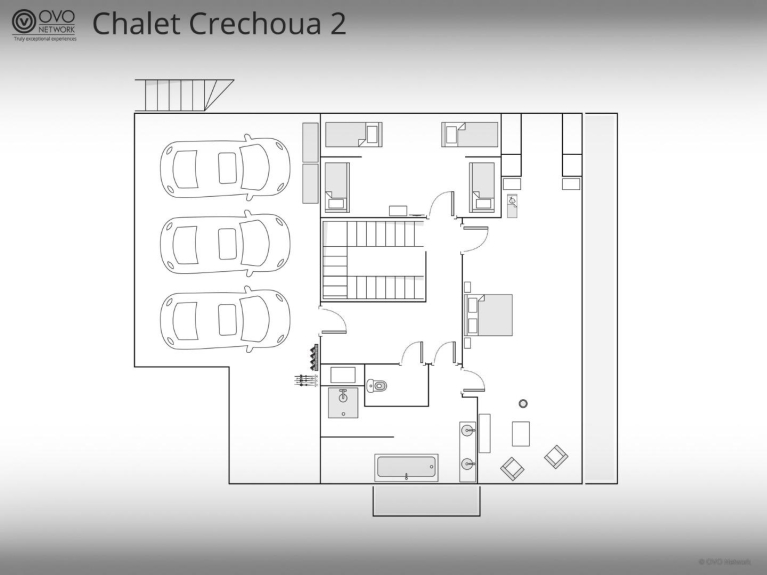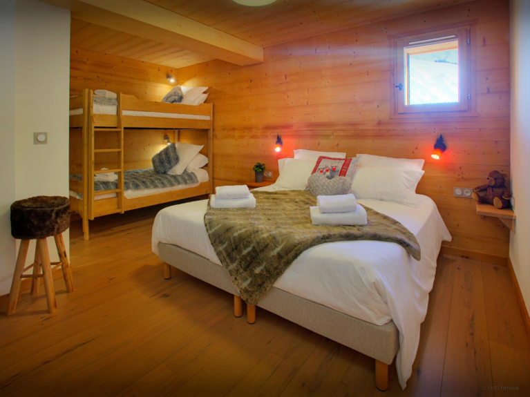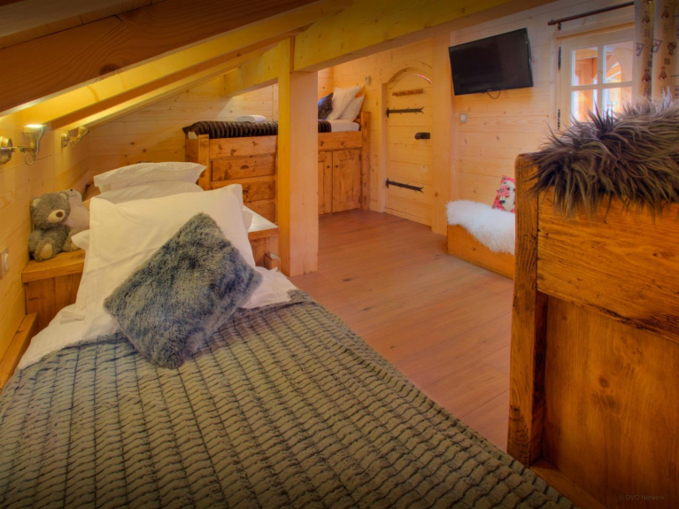 Le Chalet Crechoua possède trois chambres avec salle de bains attenante, une baignoire balnéo, un dortoir façon grenier pour 4 enfants, une suite familiale pour 3 et une chambre master pour jeune parent équipé du nécessaire (lit bébé, table à langée) pour leur jeune enfant avec salle de bains baignoire, coin salon et dressing.