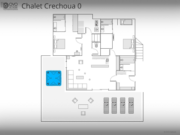 Le Chalet Crechoua est un chalet 4 étoiles neuf de 5 chambres et 5 salles de bains conçu pour 14 personnes (10 adultes maximum).