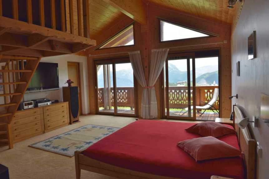 Très grand Appartement propriétaire classé 4 étoiles sur 2 étages dans chalet de haut standing sur les pistes, jusqu'à 12 personnes, Local à skis et chaussures ou vélos 5 pièces, 2 salles de bain, 3 WC, grande cuisine américaine, salon avec cheminée, 1 des 3 chambres avec mezzanine et cheminée, (bois fourni) salon home cinéma etc...