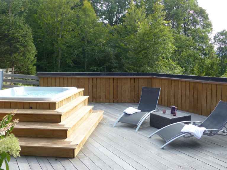 Coin feu bois fournis, télévision, 2 grande Terrasse individuelle avec jacuzzi extérieur exposition sud et sud ouest