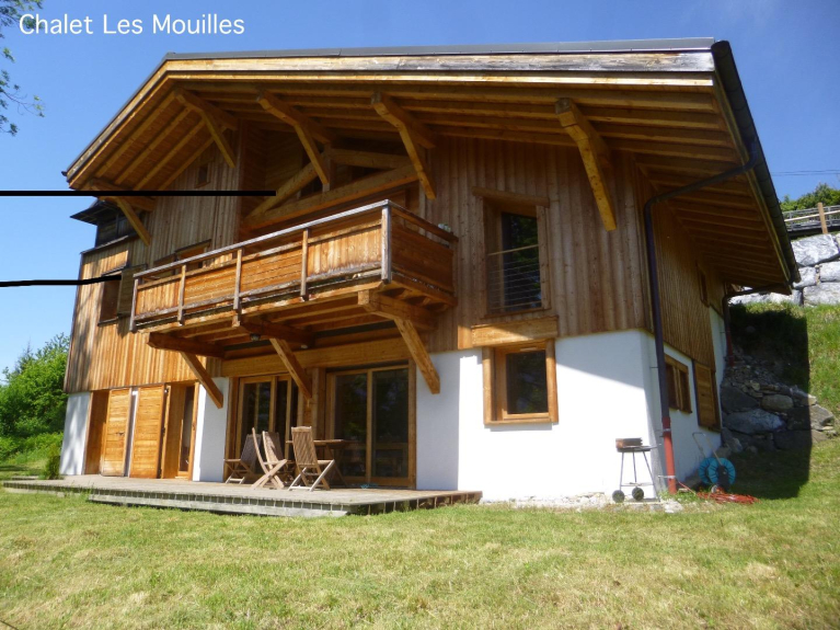 Grand appartement de 101m2 dans chalet neuf typiquement savoyard . Logement entier avec accès indépendant . Situé sur les coteaux sud ensoleillés de Samoëns . Face aux grandes montagnes ( Criou et Mt Buet )et a la station de ski de Samoëns . Composition: Grande pièce a vivre : Salon ,grande table repas, cuisine ouverte conviviale équipée de tout l'électro- ménager moderne : Four,plaque a induction ,micro-onde,lave vaisselle, réfrigérateur ,Bouilloire, Cafetière,grille pain .