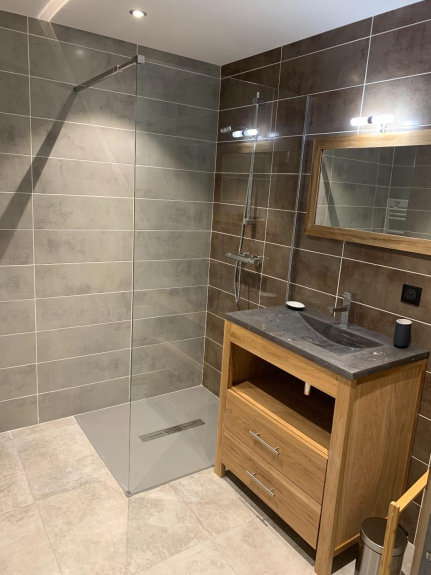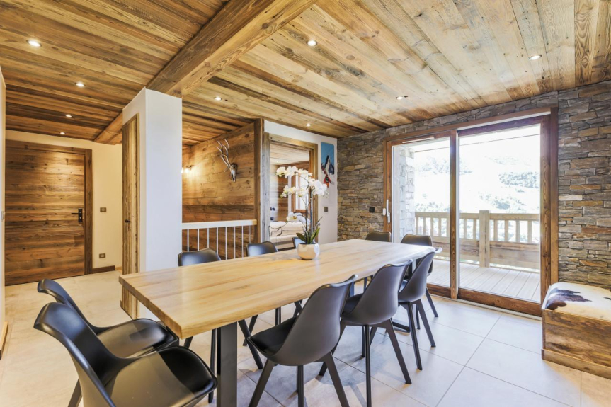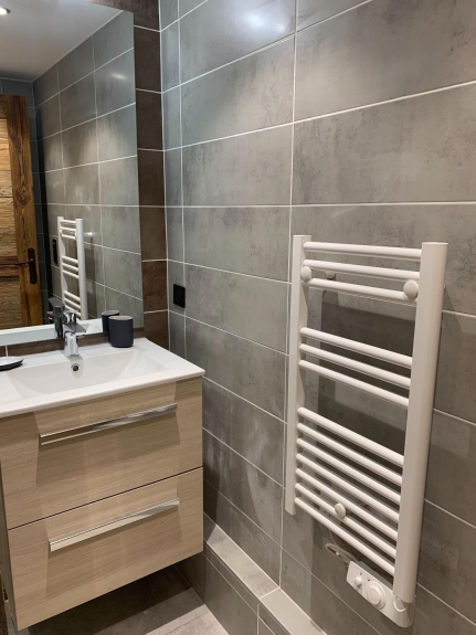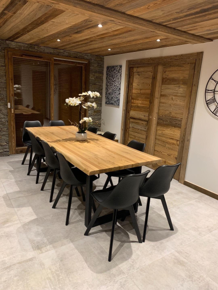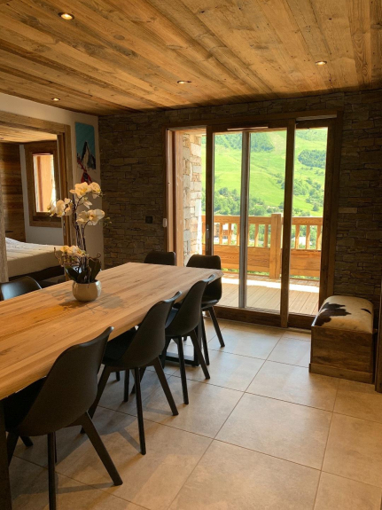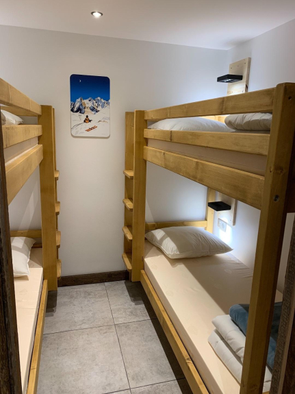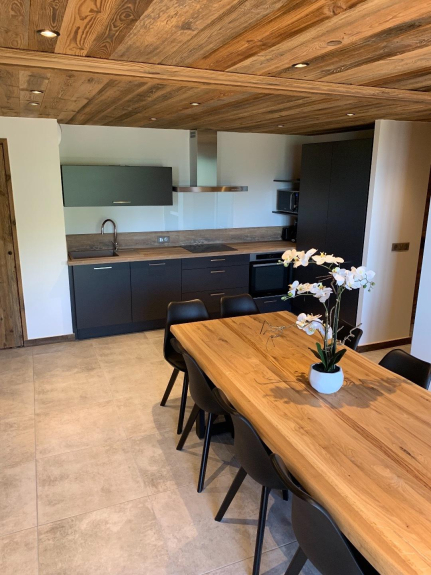 Grand Appartement neuf équipé pour 10 personnes dans un style chalet de montagne cosy et chaleureux.Grand confort pour vos vacances en famille.Au premier niveau,vous trouverez une cuisine entièrement équipée ( lave vaisselle, micro ondes,plaques induction, appareils à raclette, fondue et pierrade, machine à café filtre et Nespresso..)Une grande salle à manger,un salon qui se transforme en chambre à la demande avec ses portes coulissantes, il est équipé de deux canapés dont un convertible.Une salle de bain, un wc séparé et une chambre avec un lit 2 personnes et une tv.Au deuxième niveau, une chambre avec un lit 2 personnes ,une tv et dressing .Un kit bébé est à votre disposition dans cette chambre (1lit parapluie,1 baignoire,1 chaise haute).Une salle de bain, un wc séparé et un coin montagne avec des lits superposés pour 4 personnes.Vous bénéficierez également d’un casier à skis avec sèche chaussures et un garage fermé.