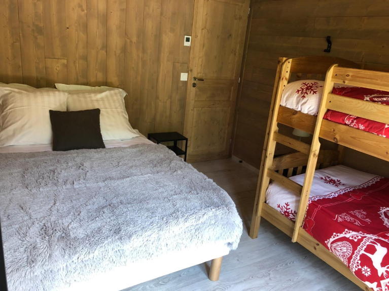 - 1 chambre avec un lit 140 x 200 + 2 lits 90 x 190 superposés, terrasse exposée sud