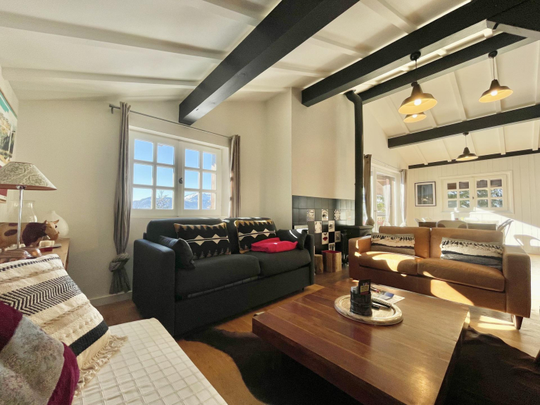 NOTRE AVIS : Un chalet plein de charme, idéal pour se retrouver en famille ou entre amis. Profitez de la chaleur du poêle à bois, d?un balcon ensoleillé et d?une vue exceptionnelle sur les montagnes. Le vrai plus : un accès direct aux pistes pour des vacances sans contrainte. Un bien rare à ne pas manquer !