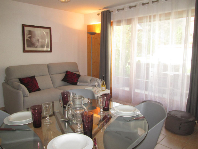 Appartement de 48m2 dans petite résidence située au calme au centre de St Jean de Sixt, à moins de 3 minutes des stations de ski de la Clusaz et du Grand-Bornand.