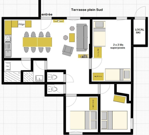 – toutes les commodités sont accessibles à pied à moins de 200m : supérette, boulangerie, cinéma, école de ski, magasin de sport, bar, restaurant…
