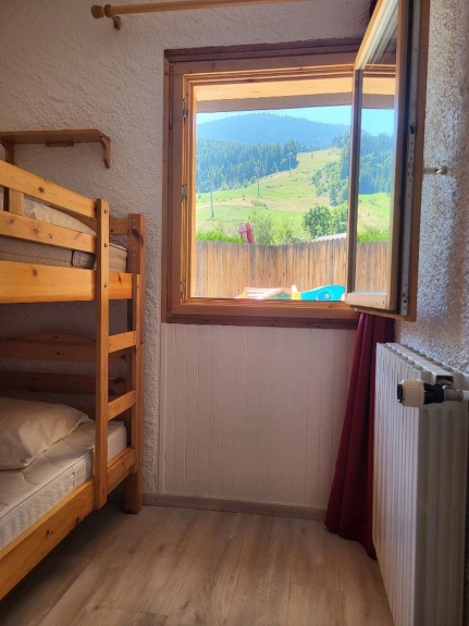 – avec vue sur les pistes de ski (hiver)et les prés et jardins potagers (été).
