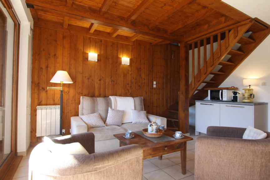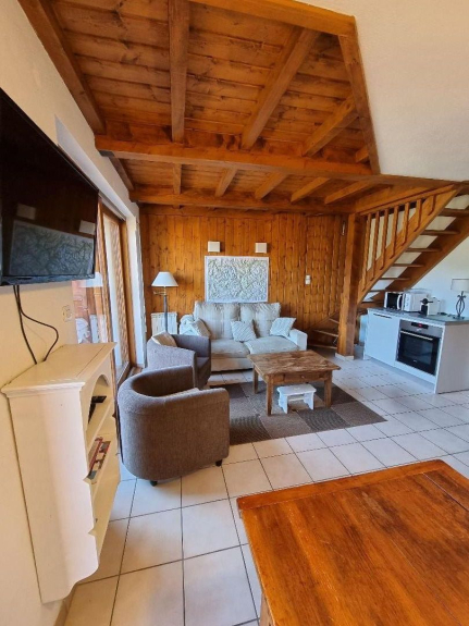 Très grand appartement T5 en Duplex, de 65m2, Résidence l'Ombelle, pour 8 personnes.Vue exceptionnelle sur les montagnes depuis une des chambre double, ainsi que depuis le salon. Services de qualité : casier à ski, parking et petit garage.
