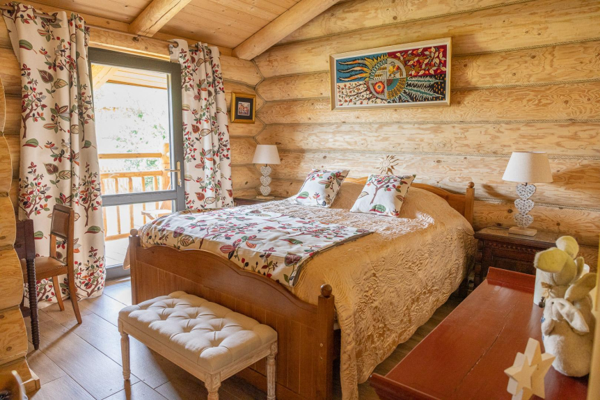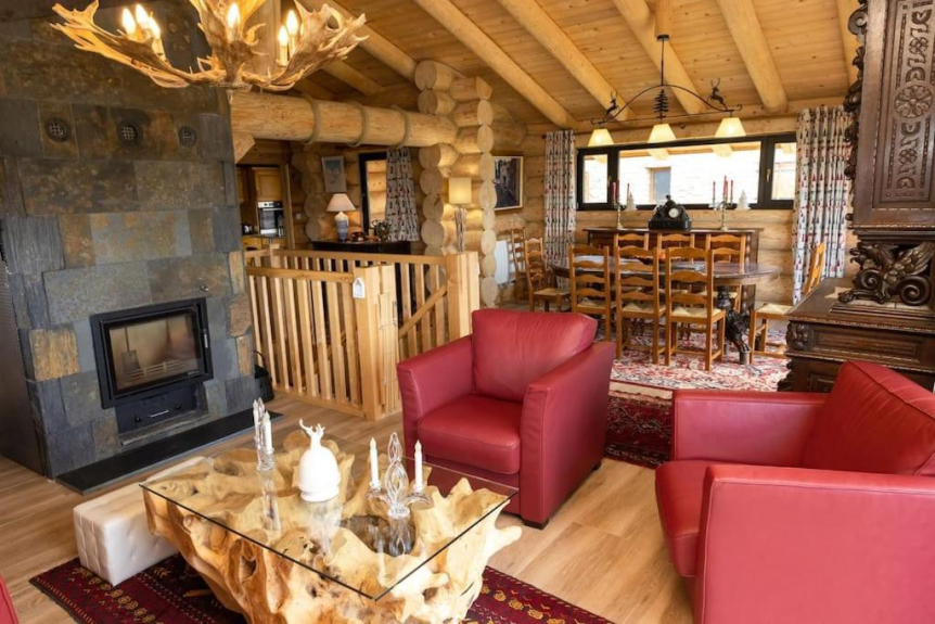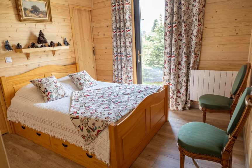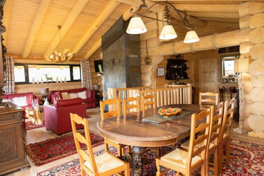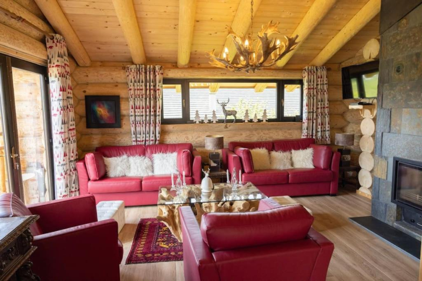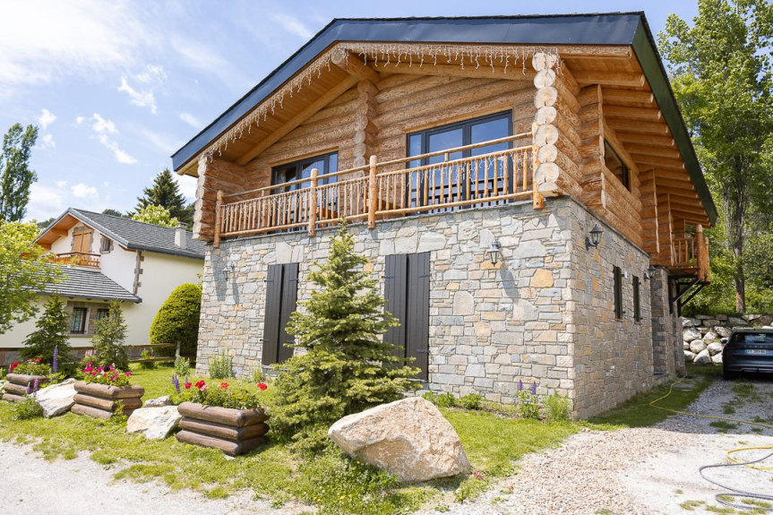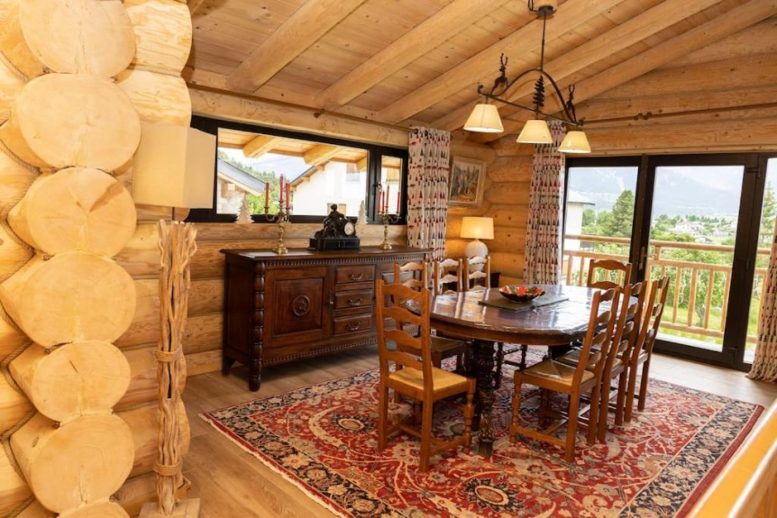 le chalet réalisé en pierre & en gros fustes naturels, écorcés à la main d'une surface de 180m2.allie confort et sérénité pour des vacances douces et actives