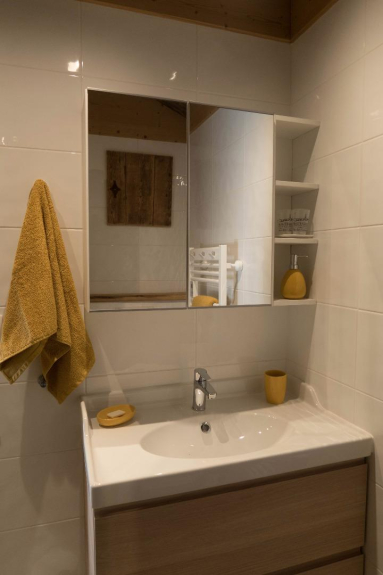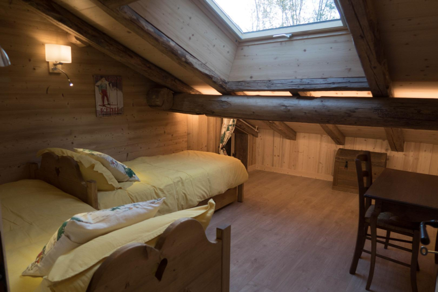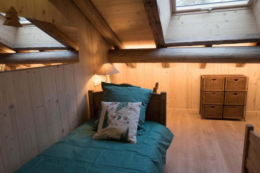 • « Sapin » et « Ski » (2 chambres mansardées) : 4 à 6 lits : 2 lits 90x190 et 2 lits 80x190 + 2 lits-tiroirs de 80x190 avec salle de bain partagée (douche, WC suspendu, lavabo) au 2ème étage