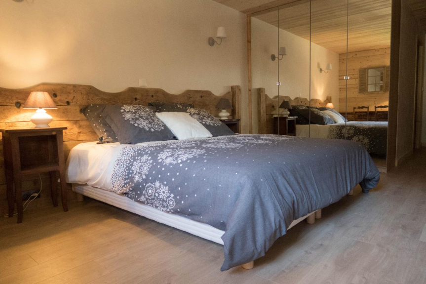 • « Flocon » : chambre avec lit 180x200 ou deux lits 90x200 avec sa salle de bain (douche, WC suspendu, lavabo double) (26 m2 au total) au RC